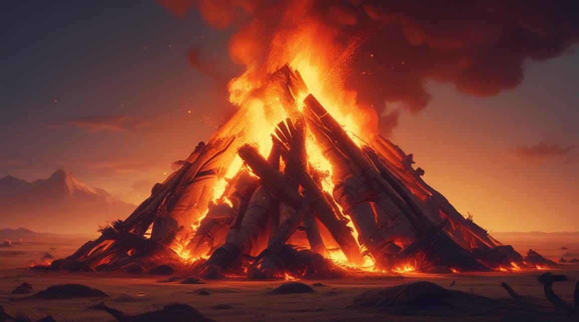 The end tries our works to see the nature of it. The Bible said our works shall be tested by fire. It would be the heat burning in our hearts when we realize that all we have built was straw with the impression of gold and but fuel for the fire. Then we would have only ourselves to have survived to start all over. It is with fear and truth in my heart that o bring to you that anything a man builds that is not Jesus is but fuel for the fire.